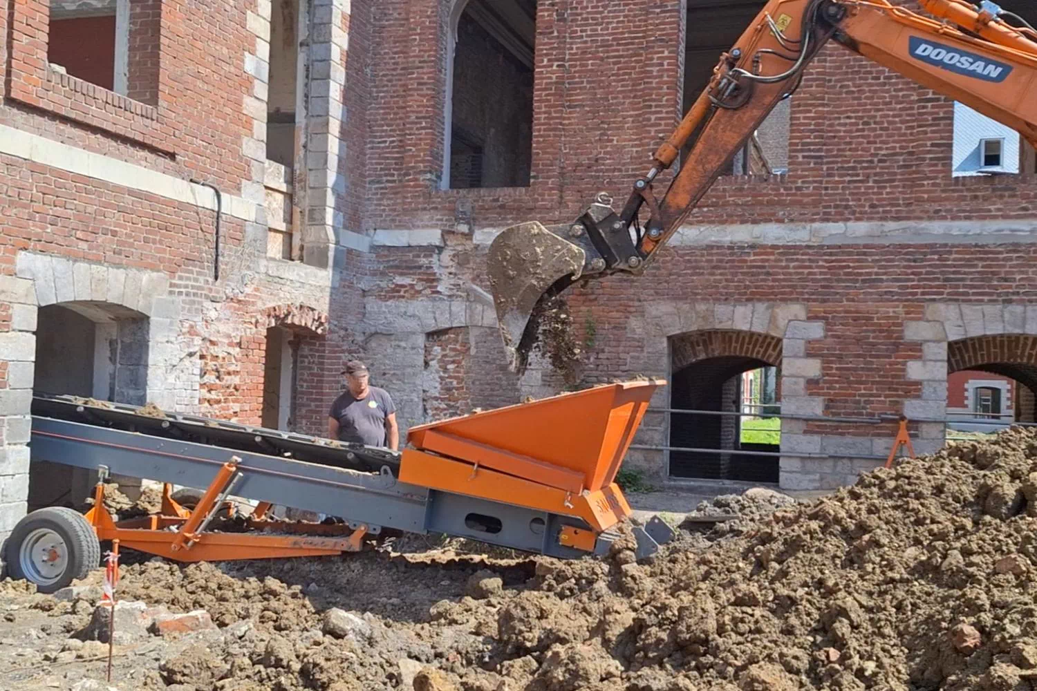 Mobile, equipped with a robust rubber belt, and available in several sizes, the dirt conveyor is adapted to a lot of tasks such as: